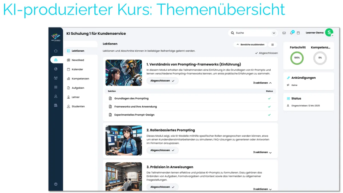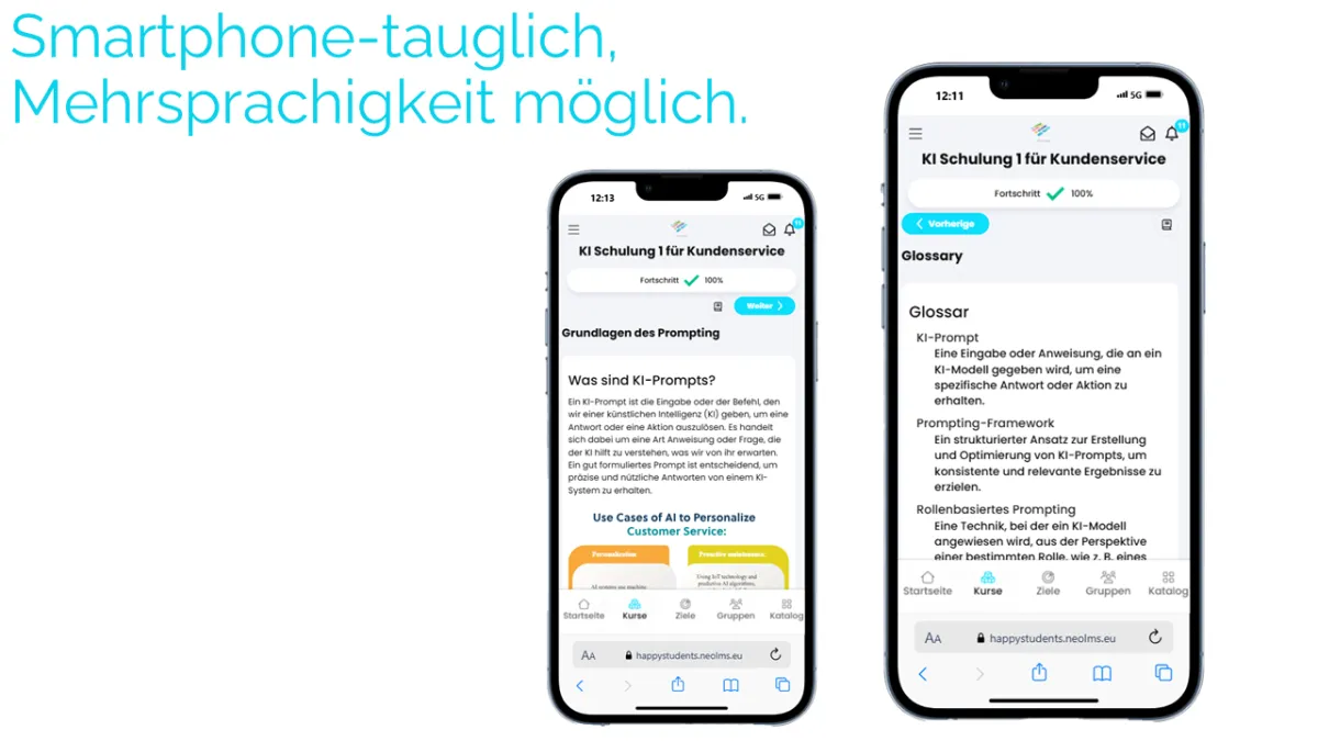 Eine Lernplattform, mit einem intuitivem Interface, welche auch mobile anwendungsfreundlich bleibt. Der Wechsel von einem alteingesessenen Tool wie Moodle lohnt sich definitiv. Danke Happy Students für die professionelle Begleitung, Verbesserungsideen und den Support.